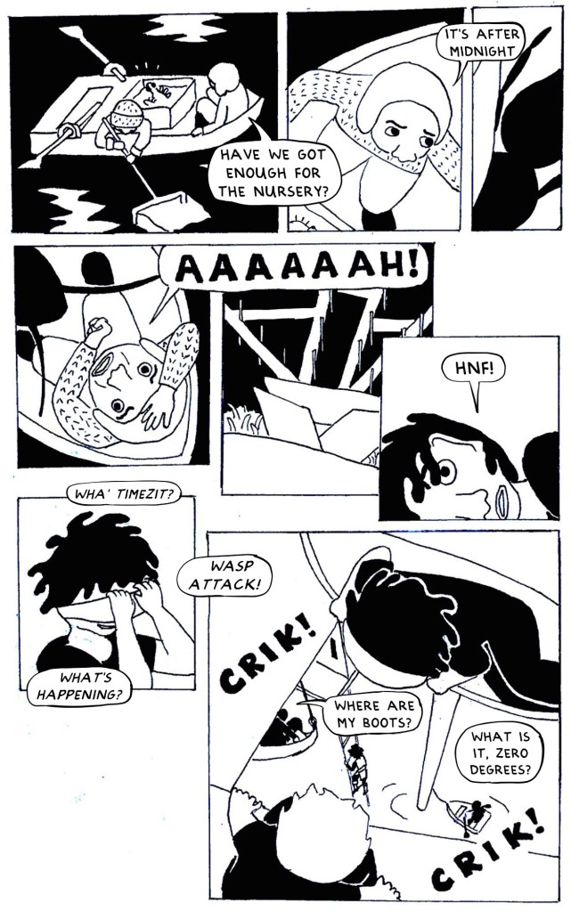 This is really good! I expect that drawing action scenes, like the wasp atack, is far more challenging than writing them in story form?